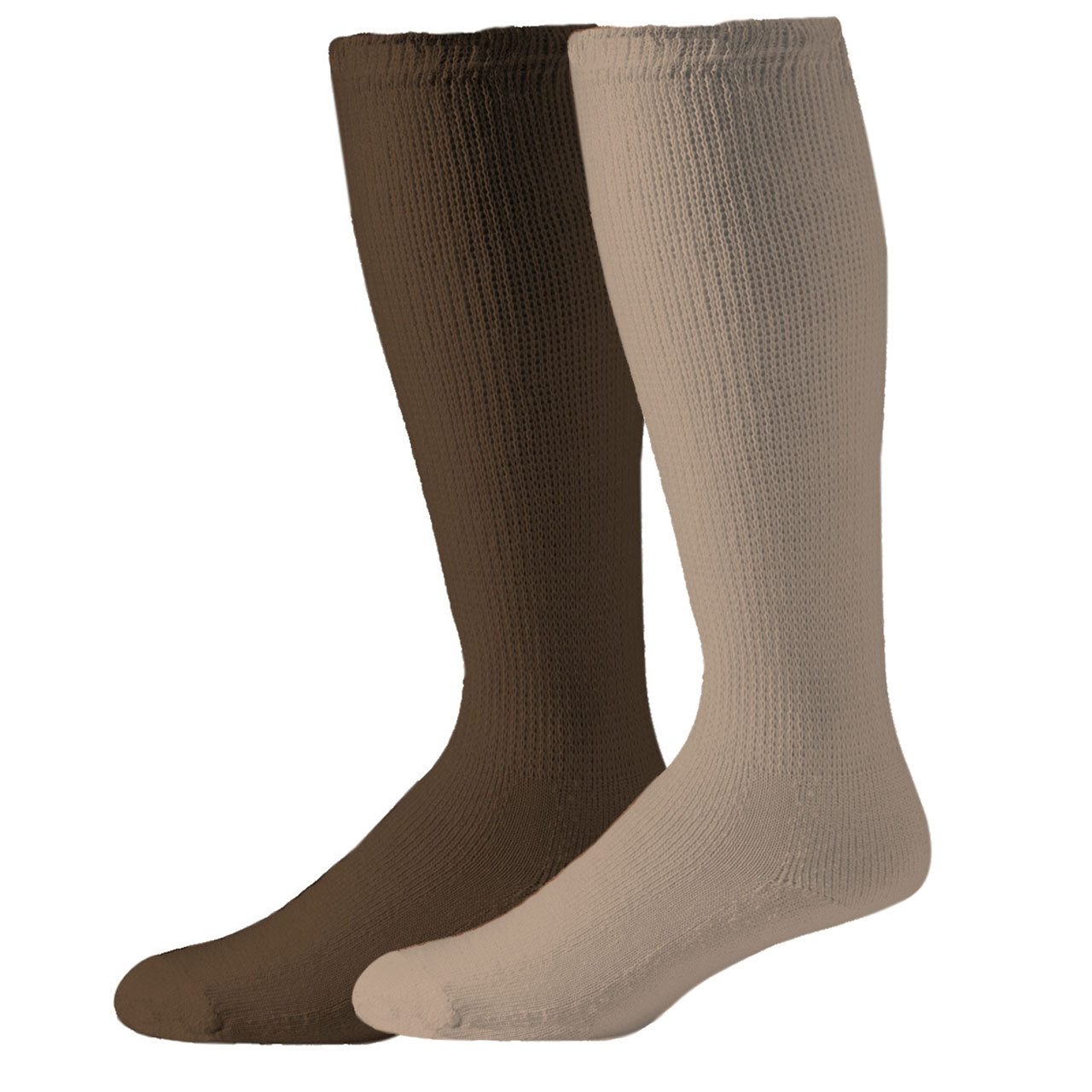 Physician’s Choice over the calf socks, recommended by doctors, are ideal for diabetics and individuals searching for a cozy sock that will not restrict their blood flow. The poly-cotton, mid-weight blend fabric keeps your feet comfortable and cozy and the loose-fit top enables maximum circulation. These are high-quality men's and women's diabetic over the calf socks. The unique sock design is specifically tailored to be non-restrictive and promotes blood circulation, which makes for the perfect socks for anyone with circulation issues. Also known as edema socks, and neuropathy socks. Made in the USA, they use a breathable blend of cotton and polyester/Polyamide, which provides the perfect elasticity to give support but retains circulation.